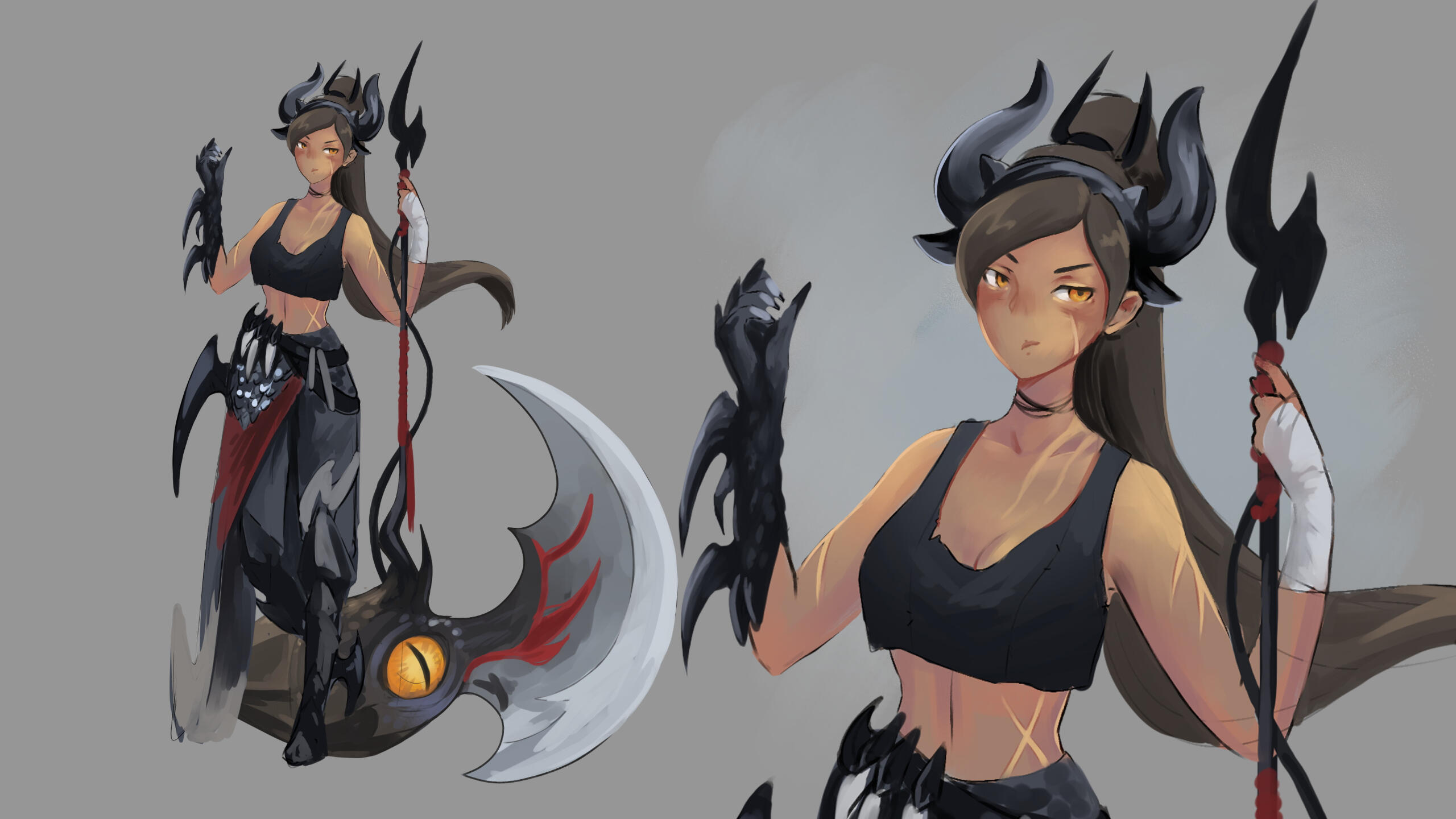 A genius alchemist from the rogue town of Lyheri. Her sharp mind, strong will, and seductive body allowed her to impose herself as a significant player in the city, but she was tricked into creating an army of monsters for a crime boss. After witnessing the deaths of many innocents, she fled, saving the only life she could at that time. Consuming the life of a passing red panda, she turned the little girl and herself into hybrids to survive.